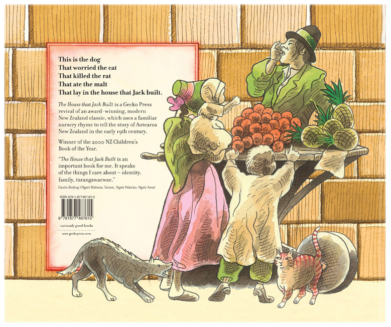 The House that Jack Built is a Gecko Press revival of an award-winning, modern New Zealand classic, which uses a familiar nursery rhyme to tell the story of Aotearoa New Zealand in the early 19th century.